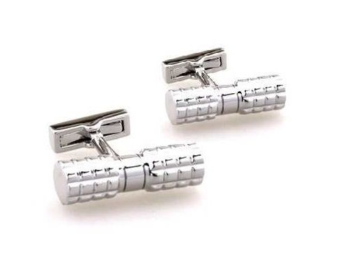 Elegante y tradicional gemelo de rodio Clásico con Forma Cilindro Tallado y Asa en Medio.
