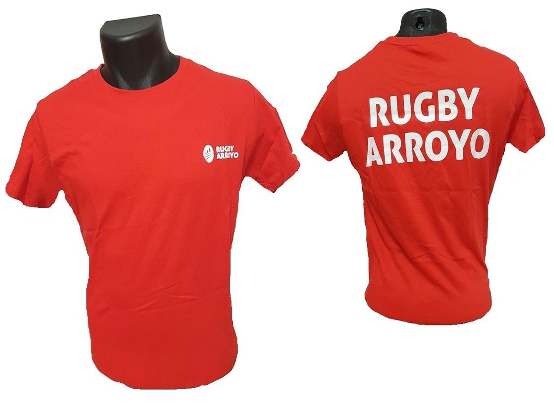 Camiseta Basic, la que no puede faltar, en algodón de color rojo, con el logo serigrafiado del Club de Rugby Arroyo en el pecho y con las letras del club en la espalda, de color blanco