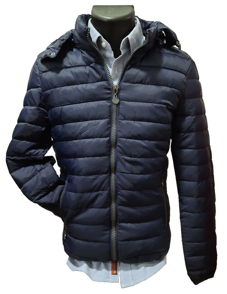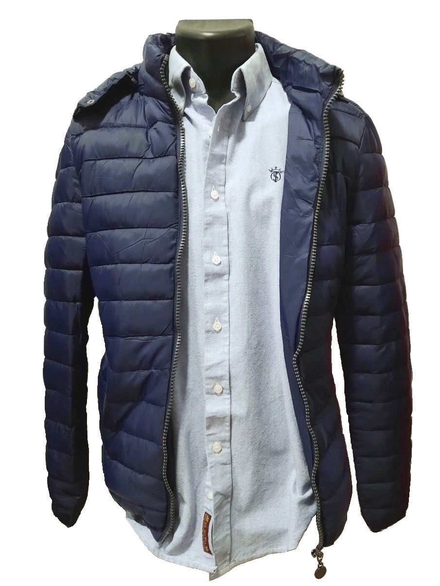 Cazadora STICH en Azul Marino con cremallera y bolsillos, superligera El Soto, con dos bolsillos exteriores con cremallera y bolsillo interior, cierre de cremallera, tejido soft ultraligero, muy confortable y abrigada sin peso, con capucha desmontable.