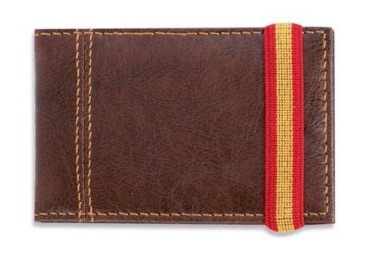 Tarjetero Marrón en Ppiel con cierre elástico de la Bandera de España