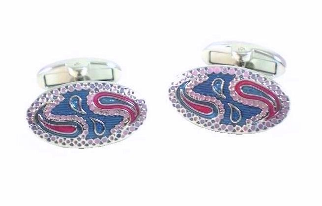 Bonito y colorido gemelo de rodio con Esmalte Ovalados con Cachemire Fucsia y Rosa con Fondo Azul.
