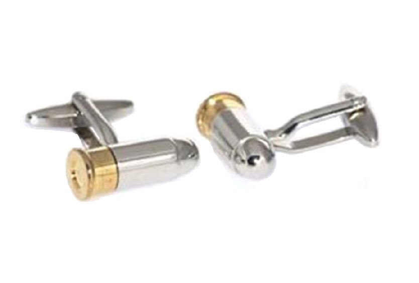 Elegante y original gemelo de rodio en fantasía Gemelos de Bala plateada y dorada proyectil de pistola con calibre en rodio con Caja Elegance.