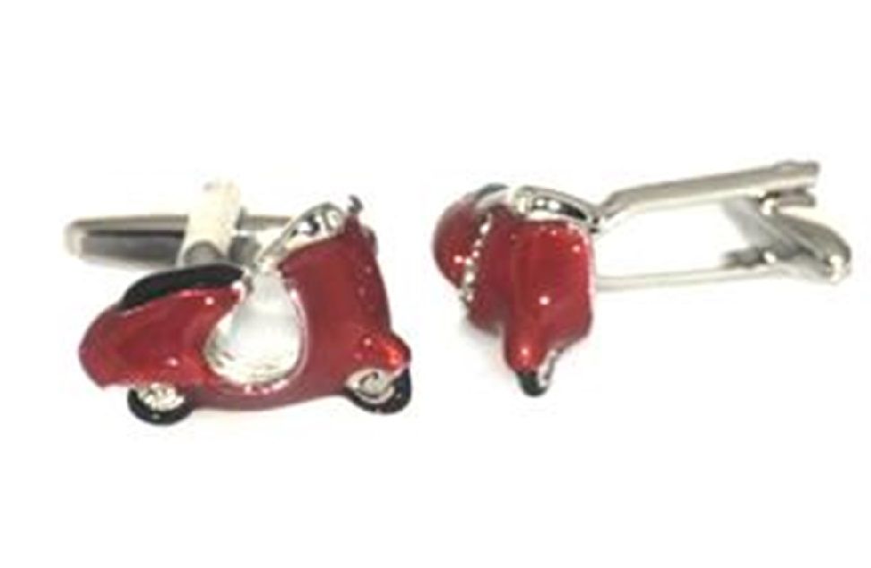 Elegante y original gemelo de rodio en fantasía Gemelos de Moto Vespa en rodio esmaltado en color roja con Caja Elegance.