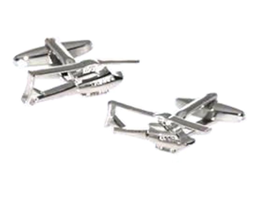 Gemelos de Helicóptero militar en rodio plateado con Caja Elegance