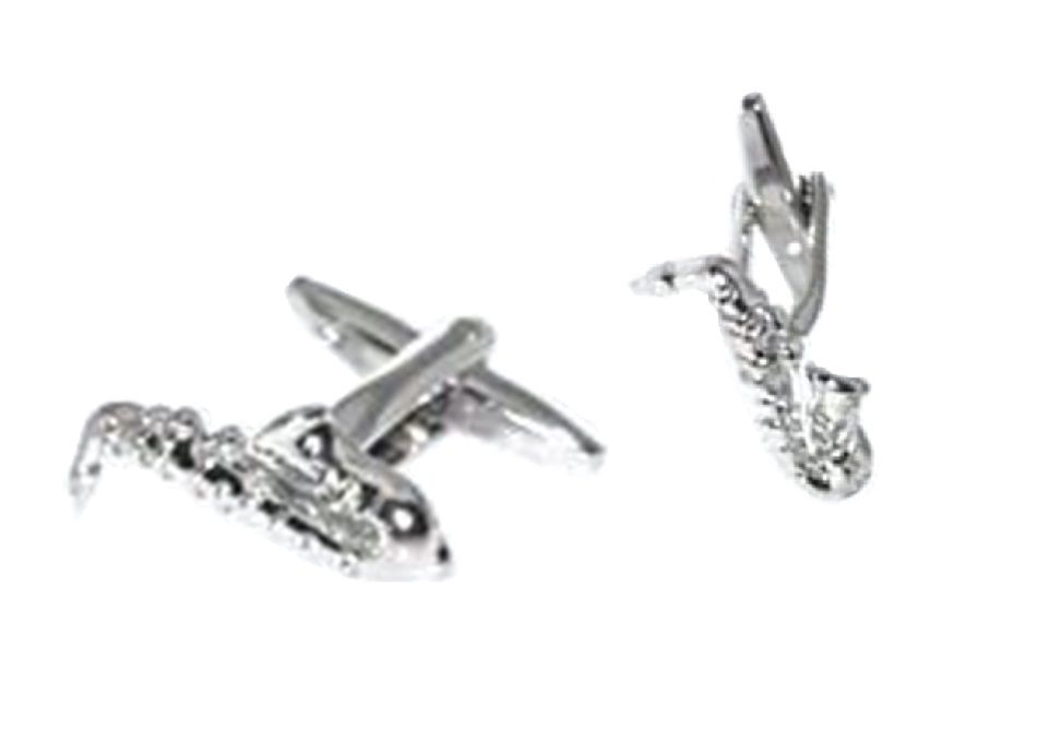 Elegante y original gemelo de rodio en fantasía Gemelos de Saxofón instrumento de viento saxo en rodio plateado brillante con Caja Elegance.