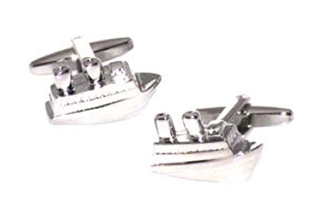 Elegante y original gemelo de rodio en fantasía Gemelos de Barco de Crucero trasatlántico con chimeneas tipo Titánic en rodio plateado con Caja Elegance.
