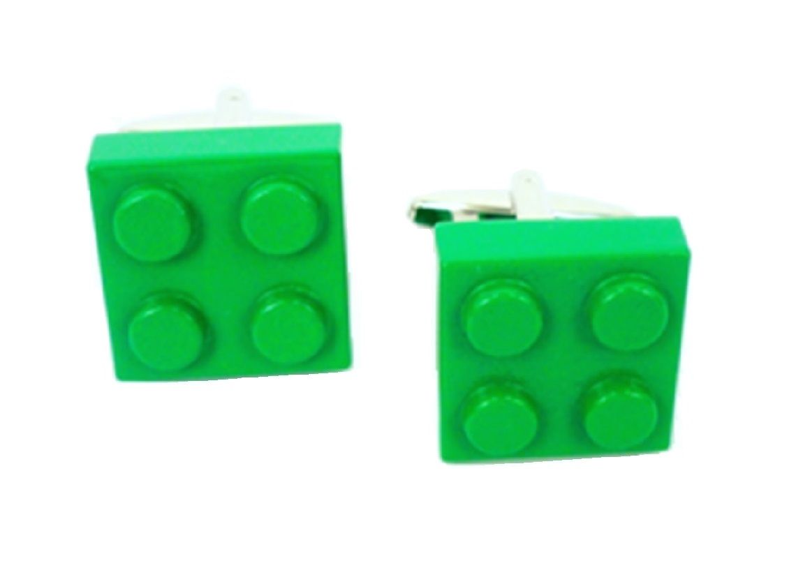 Elegante y original gemelo de rodio en fantasía Gemelos de Pieza tipo LEGO en rodio esmaltado en color verde con Caja Elegance.