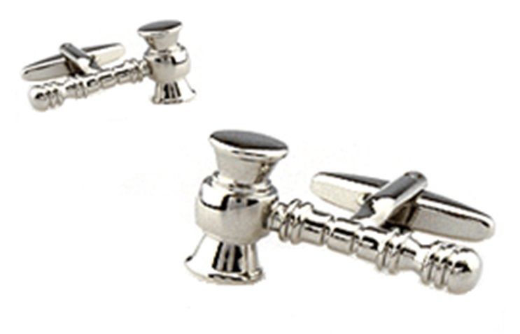 Elegante y original gemelo de rodio en fantasía de maza o mallete, martillo de juez para la sentencia en los juzgados tras un juicio en rodio plateado brillante con Caja Elegance
