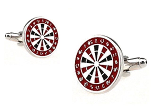Elegante y original gemelo de rodio en fantasía de Dianas para lanzar dardos con puntuación en rodio esmaltado rojo y negro con Caja Elegance.
