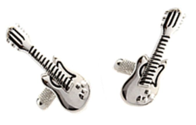 Elegante y original gemelo de rodio en fantasía de Guitarra eléctrica Bajo de Rock Pop Heavy grupo de música en rodio plateado brillante con Caja Elegance.