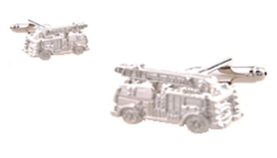 Elegante y original gemelo de rodio en fantasía de Camión de bomberos plateado cromado con su escalera y sirenas coche de bomberos de rodio con Caja Elegance.