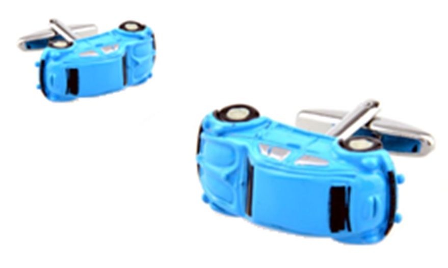 Elegante y original gemelo de rodio en fantasía de Coche escarabajo clásico en azul claro VW Beetle de esmalte en rodio con Caja Elegance.