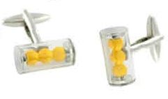 Elegante y original gemelo de rodio en fantasía de Bote de bolas de tenis padel amarillas en rodio plateado y esmalte con caja Elegance.