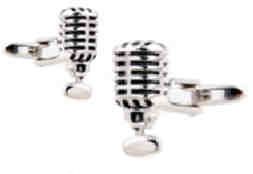 Elegante y original gemelo de rodio en fantasía de Micrófono antigüo vintage retro de radio en rodio plateado con Caja Elegance.