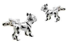 Elegante y original gemelo de rodio en fantasía de Perro raza Bulldog Francés en rodio plateado brillante con Caja Elegance.