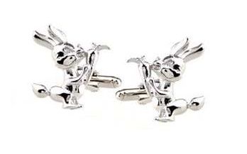 Elegante y original gemelo de rodio en fantasía de Conejo comiendo Zanahoria en Rodio Animal.