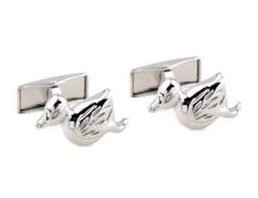 Elegante y original gemelo de rodio en fantasía de balón de Patos en Rodio Caza.