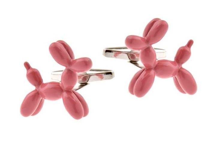 Elegante y original gemelo de rodio en fantasía de Globo Rosa con forma de Perro Globoflexia.