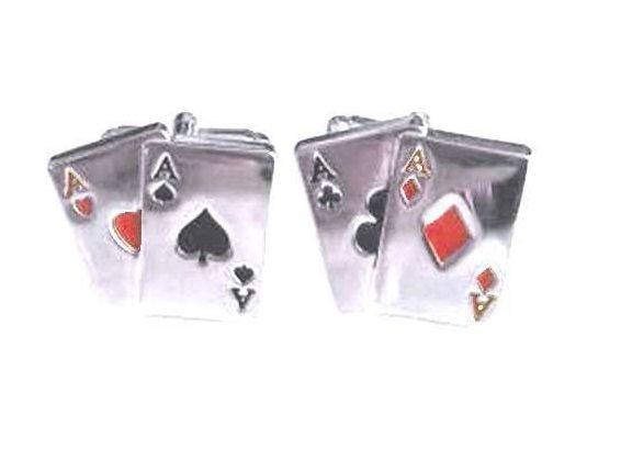 Elegante y original gemelo de rodio en fantasía de Cartas de Poker de Ases. As de Corazones Picas Tréboles y Diamantes.