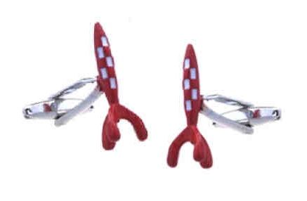 Elegante y original gemelo de rodio en fantasía de Cohete rojo y blanco Tintin espacial realizado en rodio.