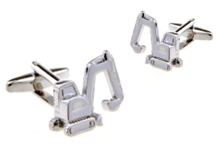 Elegante y original gemelo de rodio en fantasía de retroexcavadora de obras construcción con pala arquitectura industrial en rodio plateado, con caja Elegance