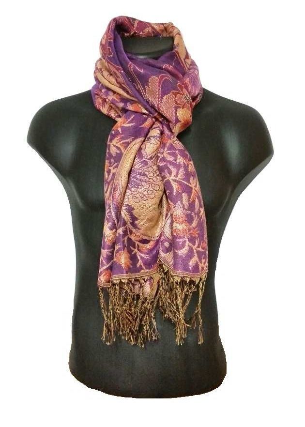FLH037 Pashmina de Flores en tonos Morados Malva y Camel con flecos El Soto