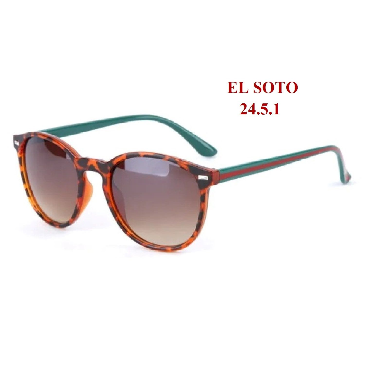 GS24.5.1 Gafas de sol con montura de pasta frontal animal print de leopardo y patillas en verde y rojo con cristales marrones con índice de protección UV400
