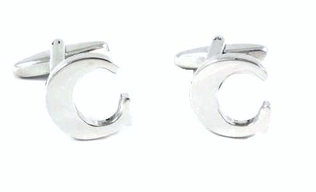 Elegantes y Distinguidos Gemelos de la Inicial Letra C mayúscula pequeña en Rodio.