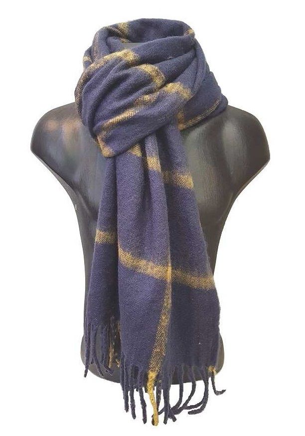 Bufanda Cuadros Azul Marino y Rayas Amarillas Gruesa con Flecos El Soto