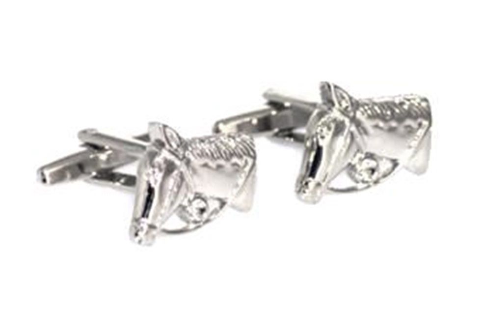 Elegante y original gemelo de rodio en fantasía Gemelos de Cabeza de Caballo con riendas y cabezada en rodio plateado brillante con Caja Elegance.